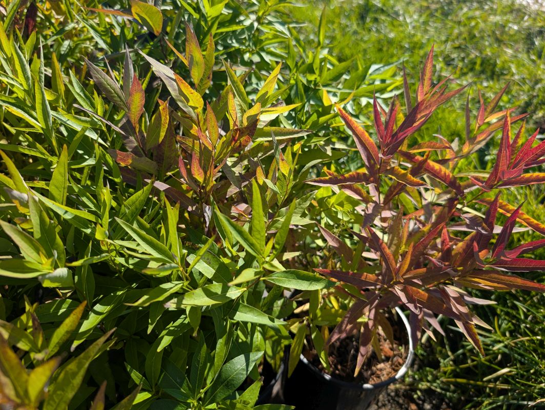 Clean, attractive foliage all season long. Narrower leaves than the species. Clump forming shrub-like habit. 24 – 36″ tall. Light blue flowers. May – June. Full sun – light shade; moist, well drained soil. Spectacular glowing yellow fall foliage. Long – lived. Attracts butterflies. Salt tolerant. Excellent in the mixed border and in masses. Eastern U.S. native. Zone 4.