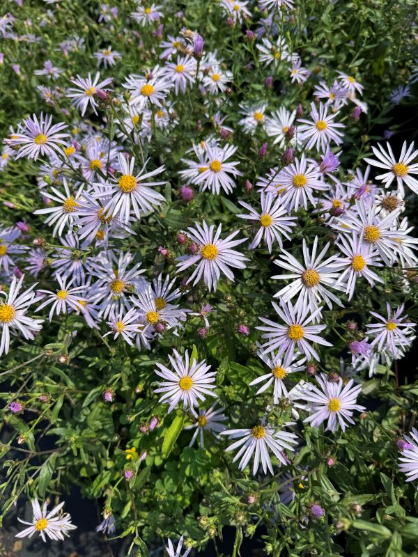 Pale, lavender-pink to almost white flowers. Aug-Oct. Green, narrow leaves on slightly purple stems. Compact and bushy; 12-24″ tall. Full sun – part sun; well-drained soil. Drought tolerant. Attracts pollinators. Containers and front of the garden. Deer resistant. Native to Europe. Zone 6.