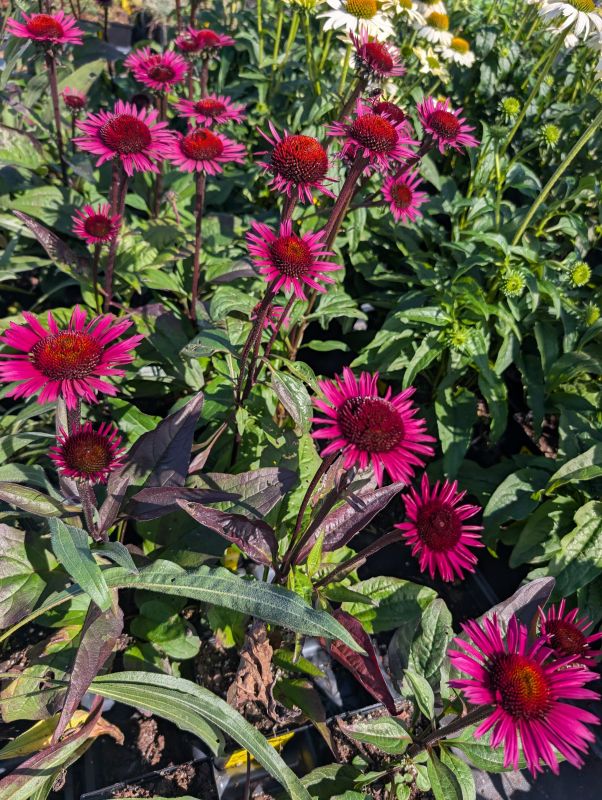 Upturned, bright magenta-purple petals with broad, flat bronze central cones. Blooms June – September. compact, 26″ tall clumps. Well-drained soil. Low maintenance. Excellent cut flower. Attracts seed-eating birds, butterflies and other pollinators. Eastern US native. Zone 3.
