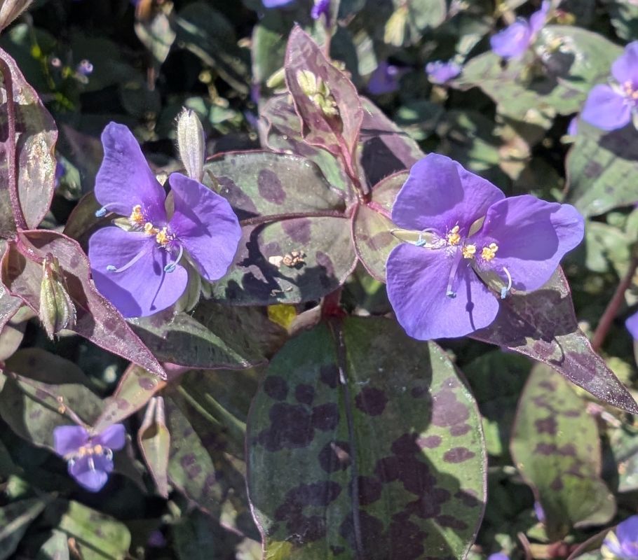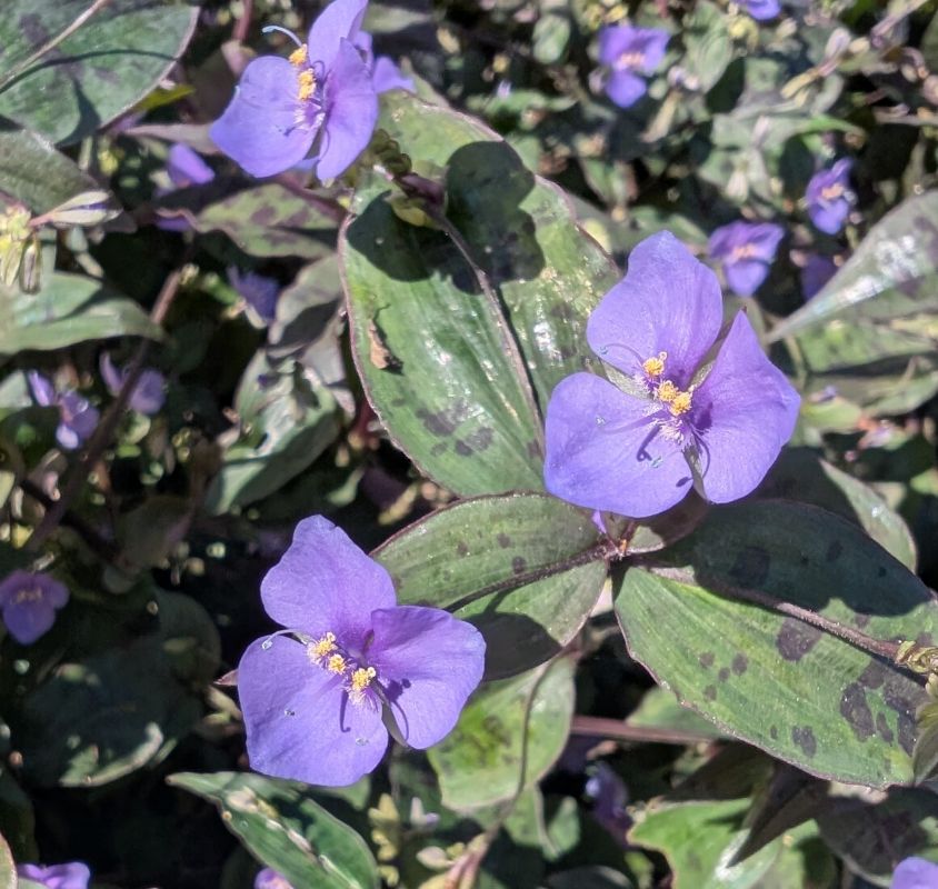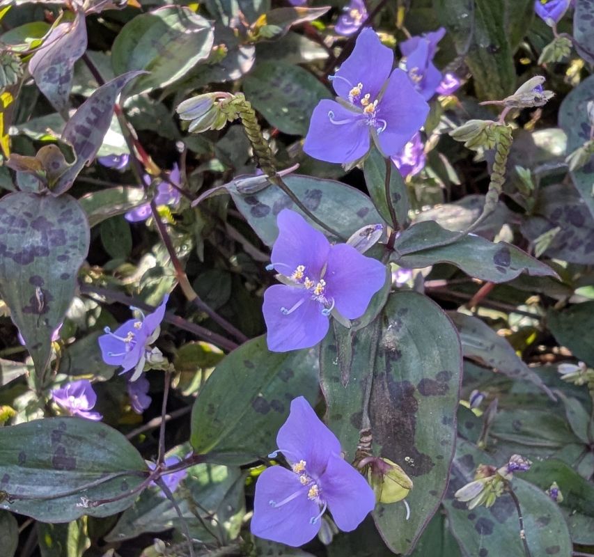 Lavender flowers August-November. Sprawling groundcover to 12″ tall. Green foliage with purple speckling. Light shade or full sun with evenly moist soil. Self-pollinating. Freely self-sows. Prefers sandy soil and coastal climates. Mulch in fall. Salt tolerant. Deer resistant. Zone 7.